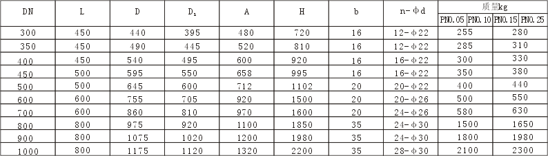 F643X-(0.5、1.0、1.5、2.0)氣動式扇(shan)形盲闆閥(fa)主要外形(xing)連及接尺(chi)寸表